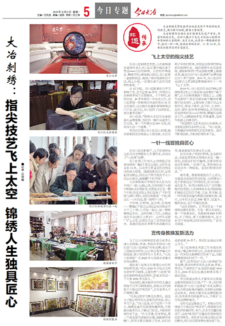 大冶刺绣:指尖技艺飞上太空 锦绣人生独